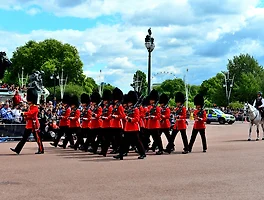 다시 군악대를 선두로 근위병들이 버킹엄 궁전을 나온다.