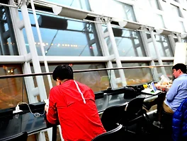 각종 현란한 색들로 장식된 간판이 도로변을 가득 채우고 있다.
