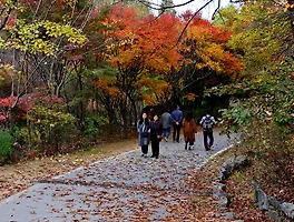 바닥에 쌓여있는 낙엽도 붉게 물들어 가는 단풍도 아름답기만 하다.