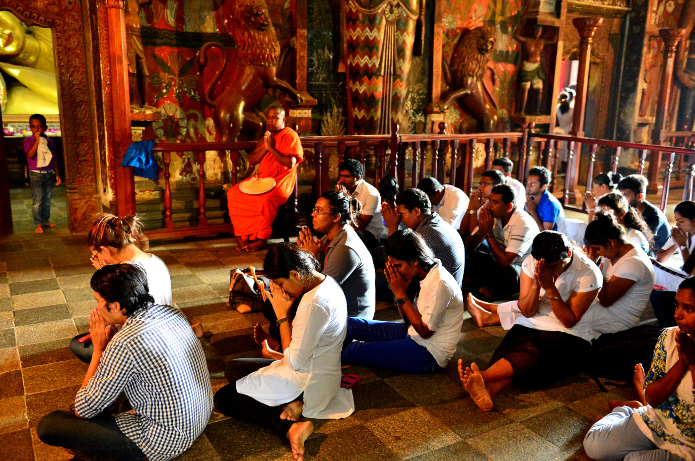 와불이 있는 법당 바로 옆에 별도로 마련된 장소에서 기도를 드리고 있는 신도들 모습이다.