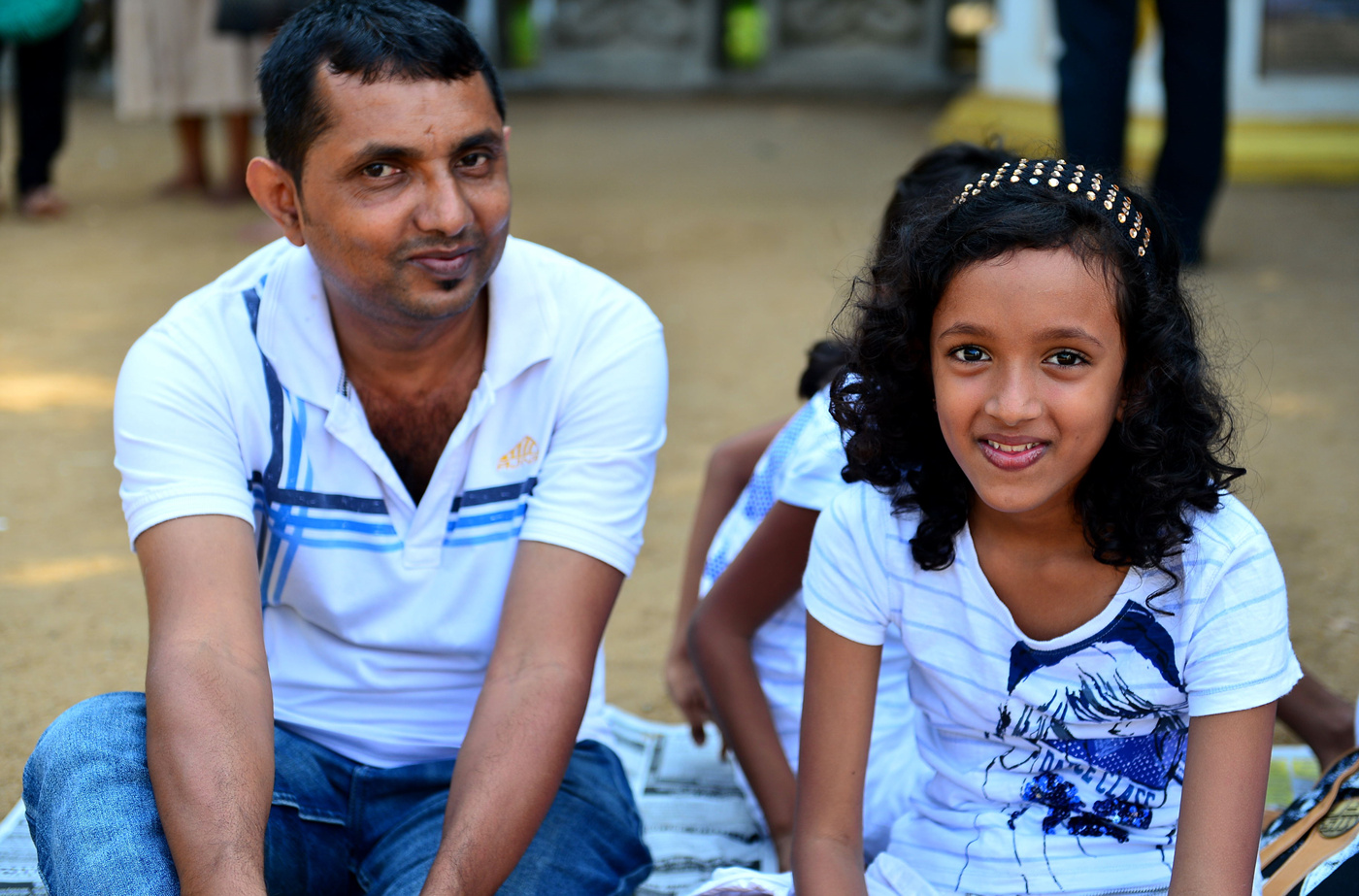 사원을 찾은 현지인 부녀 모습이다.