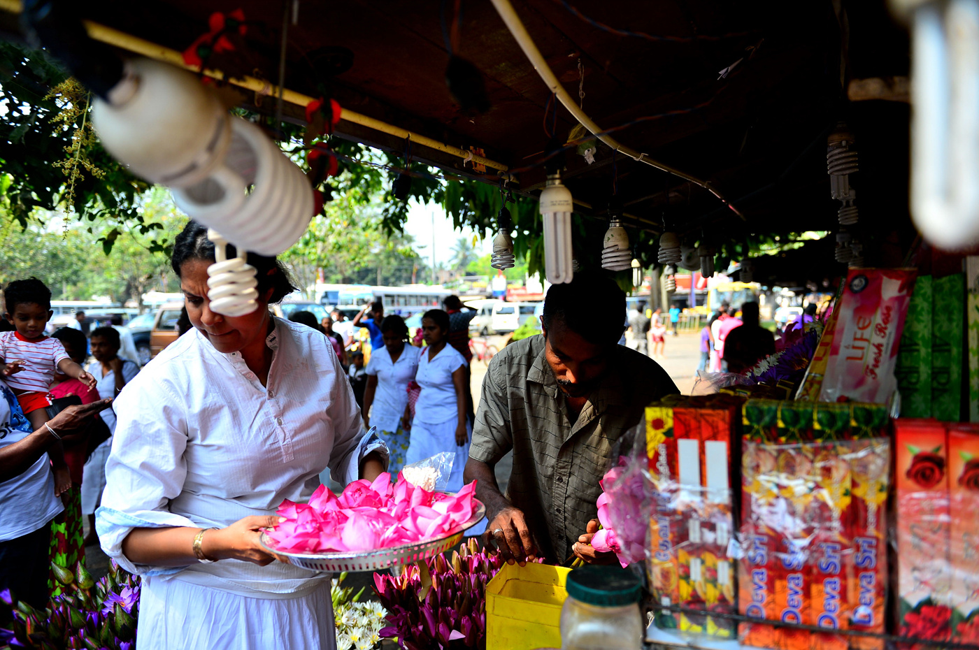 사원 밖에 늘어선 꽃을 파는 상점 모습이다.