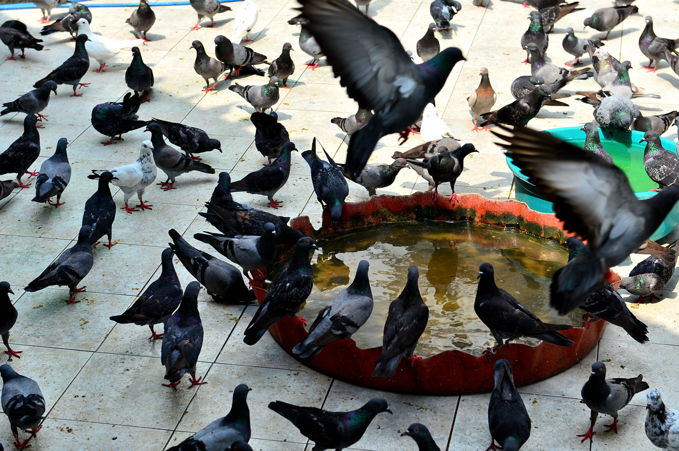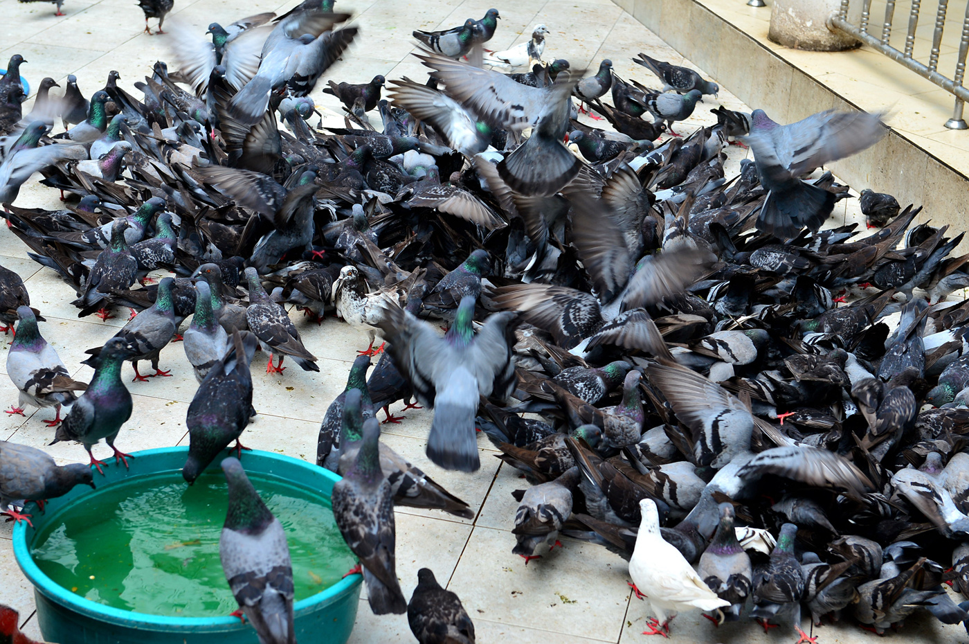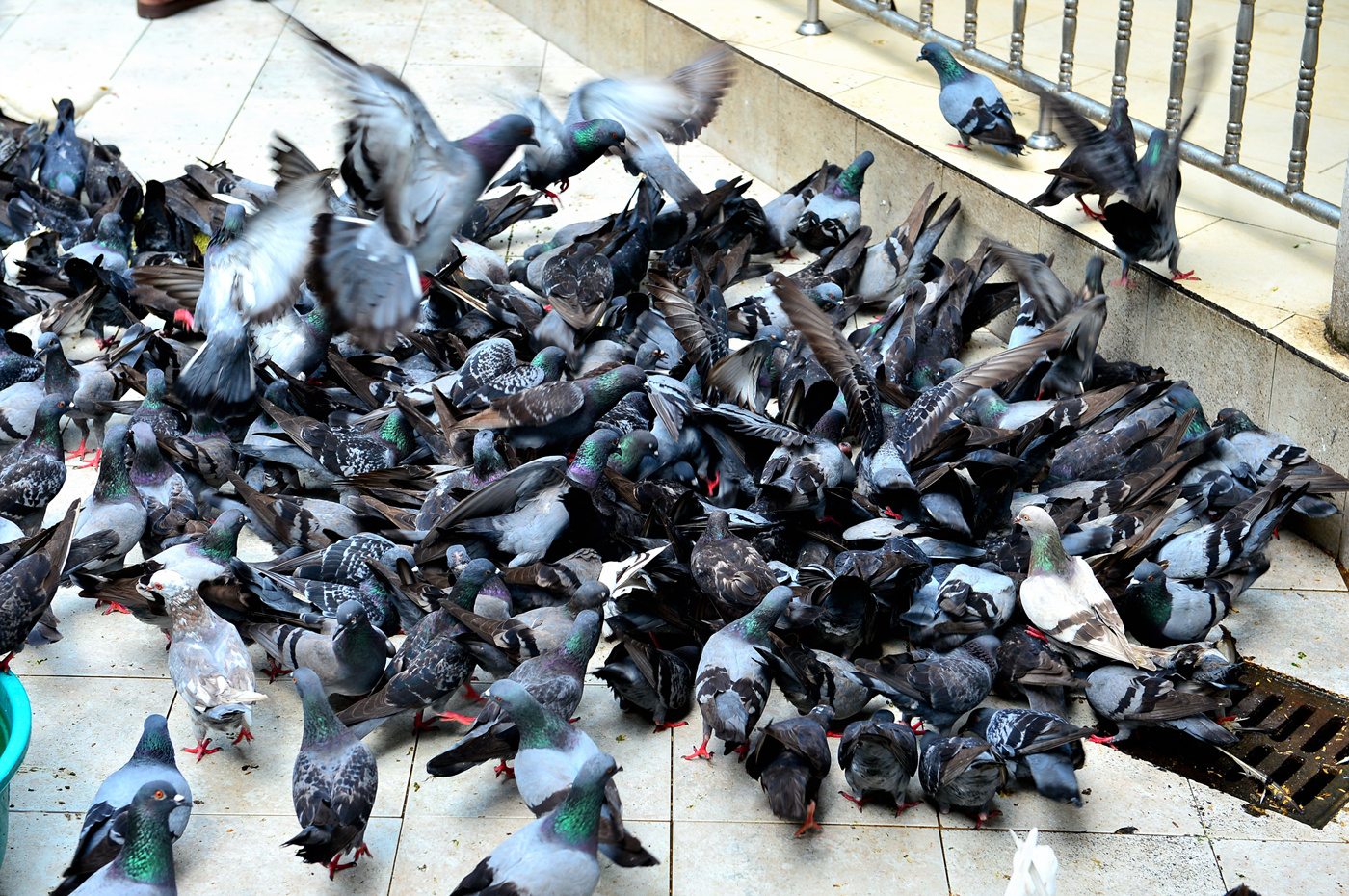 먹이를 보고 몰려드는 수많은 비둘기들~