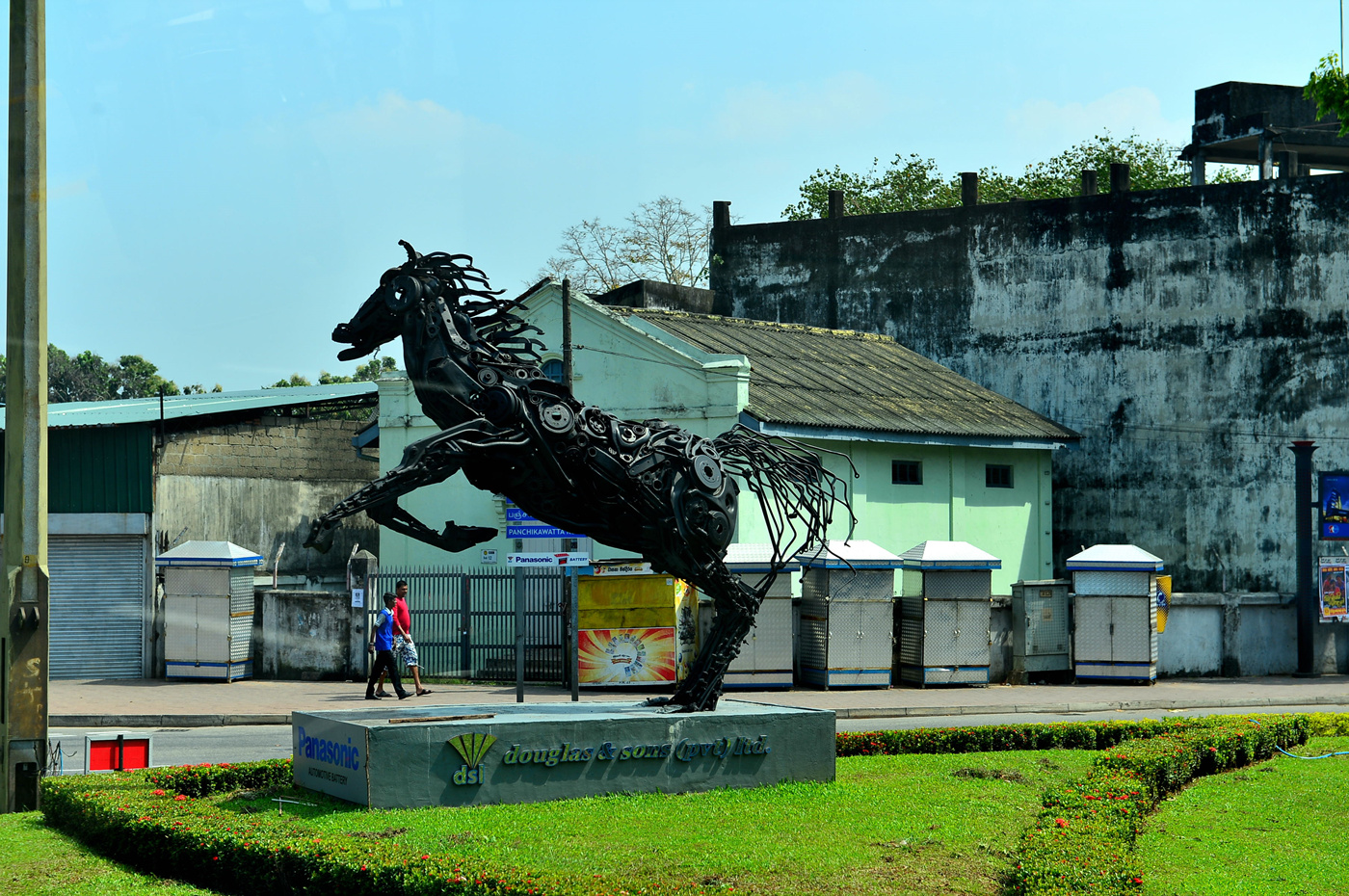 온갖 철조각을 모아 만든 듯 한데 오랜 내전으로 침체기에 빠져있던 스리랑카의 경제가 되살아나서 이 역동적인 말 처럼