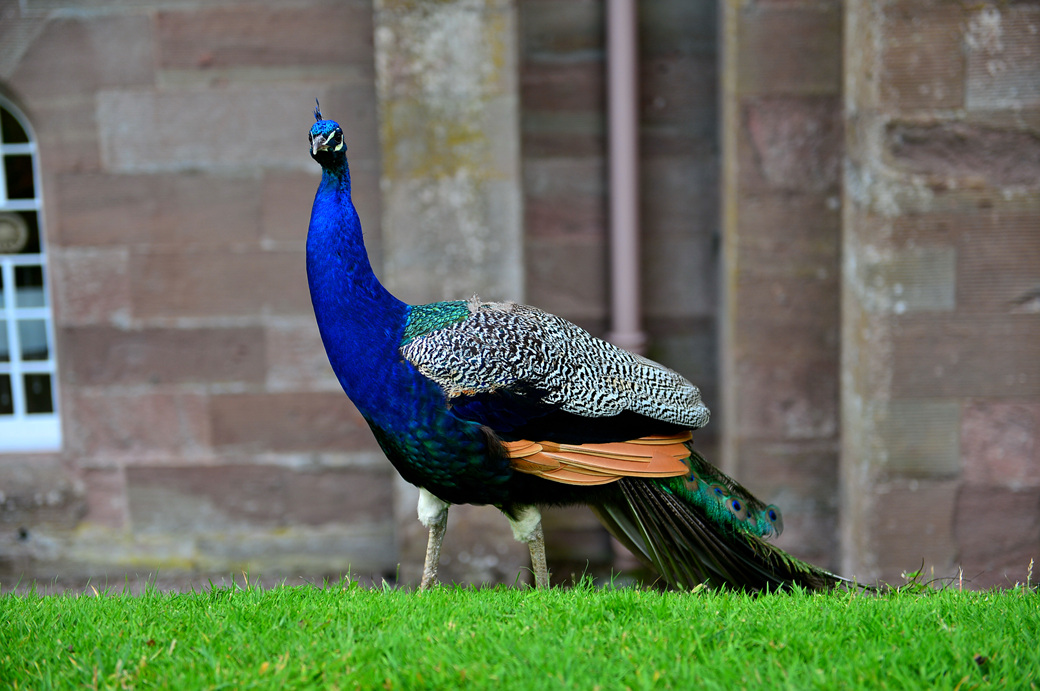 푸른 빛을 띈 공작새가 고고한 자태로 그 모습을 드러낸다.