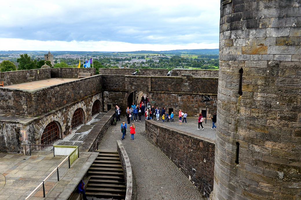 스털링 성은 평야에 우뚝 솟은 바위산 위에 서 있으며 산의 사면에 펼쳐져 있는 구 시내에는 비탈길의 양쪽에 오래된
