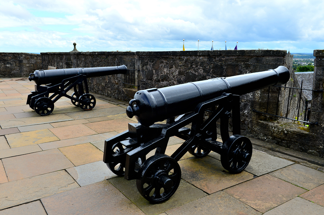 대포가 성 아래를 겨냥하고 늘어서 있는 모습이 보인다.