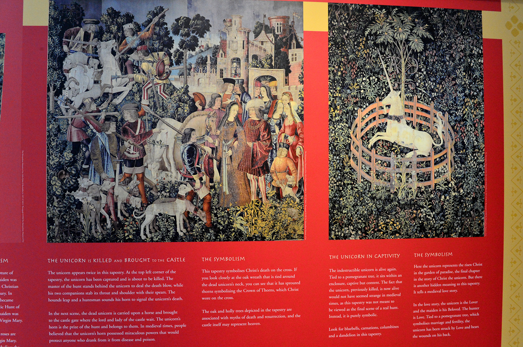 유니콘을 사냥하고 성으로 가져와 가둬놓은 모습 등을 전시해 놓았다.