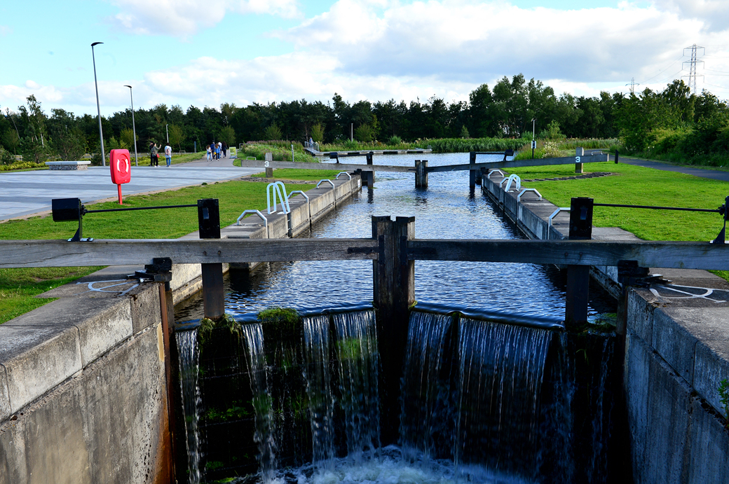 운하의 물높이를 조절할 수 있도록 만든 수문도 보인다.
