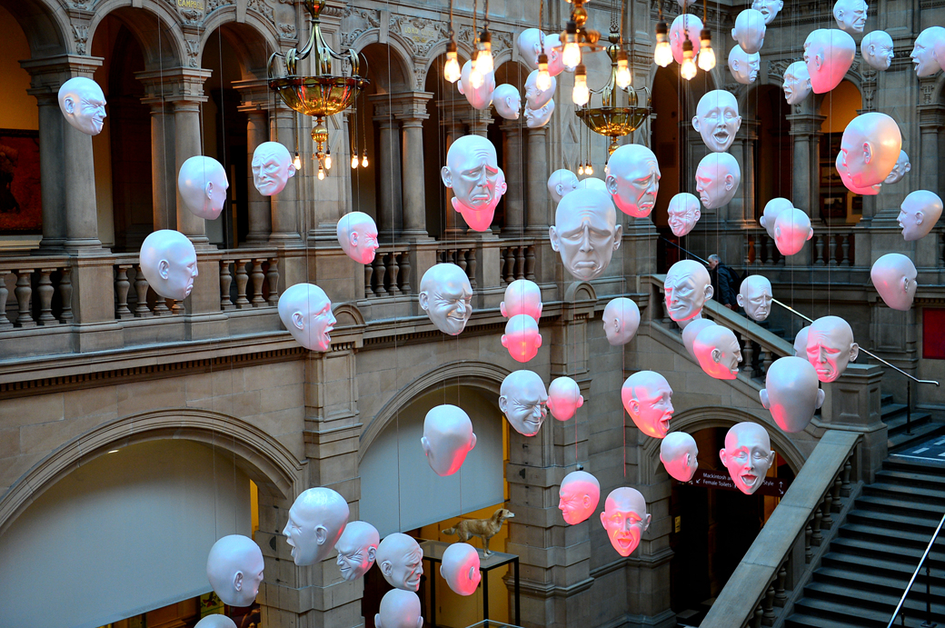 미술관 홀 상부에 매달려 있는 수많은 두상~