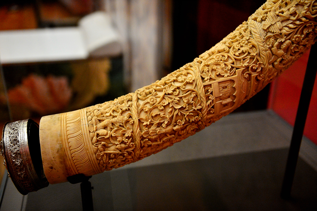 뿔에 양각해 놓은 모습이 무척 정교하다.
