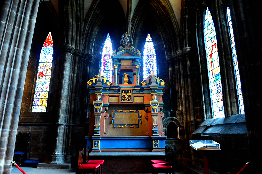이 대성당의 기원이 된 성 뭉고 St Mungo가 잠들어 있는 지하 묘지 안 모습이다.