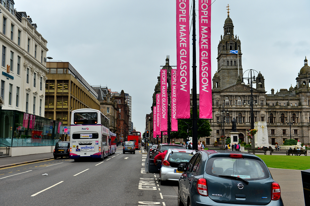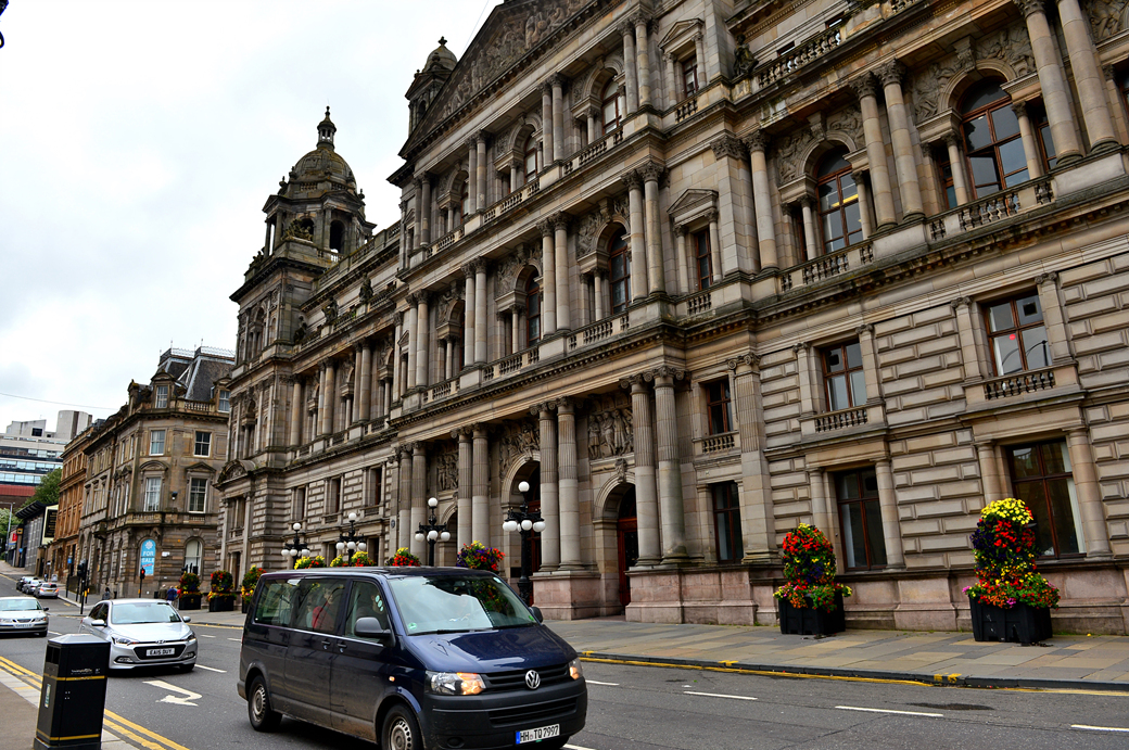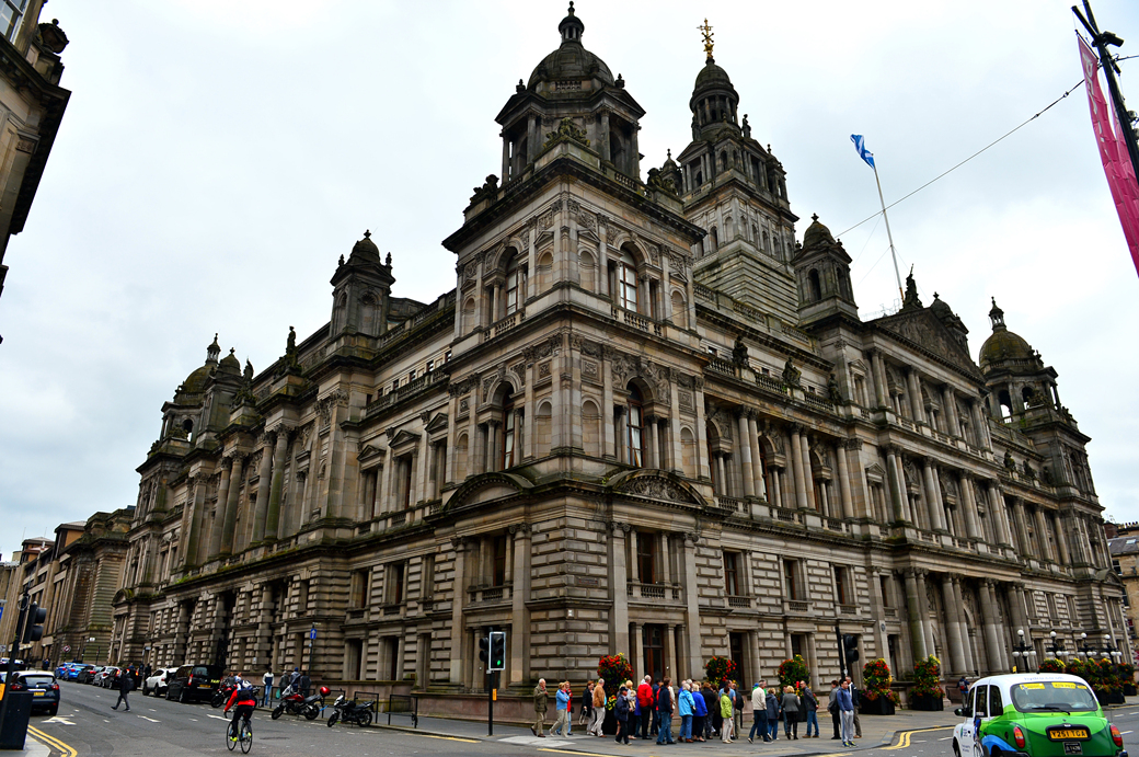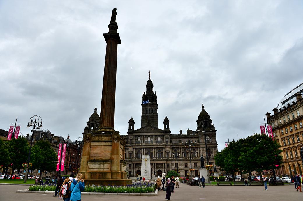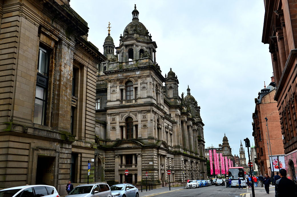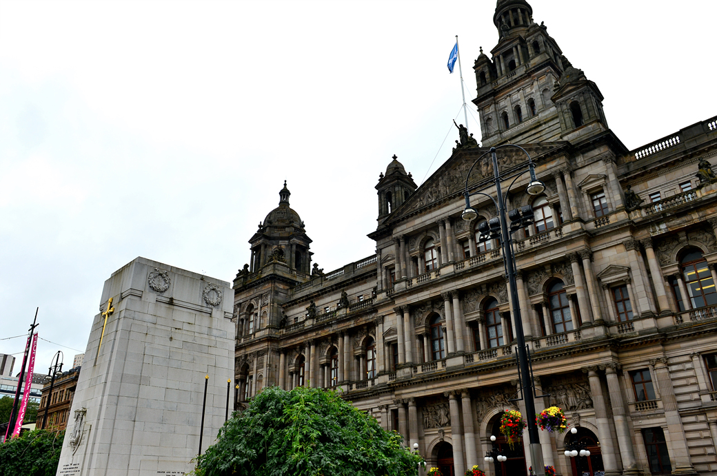 광장 앞의 웅장한 글래스고 시청사의 옆 모습이 먼저 눈에 들어온다.