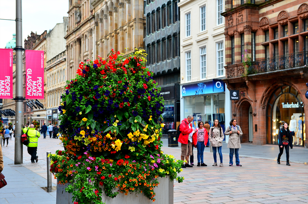 글래스고에는 회색 외관의 건물이 많아서 날씨가 흐리면 자칫 우울한 기분이 들 수 있어서, 도시 곳곳에 생기를 불어넣는