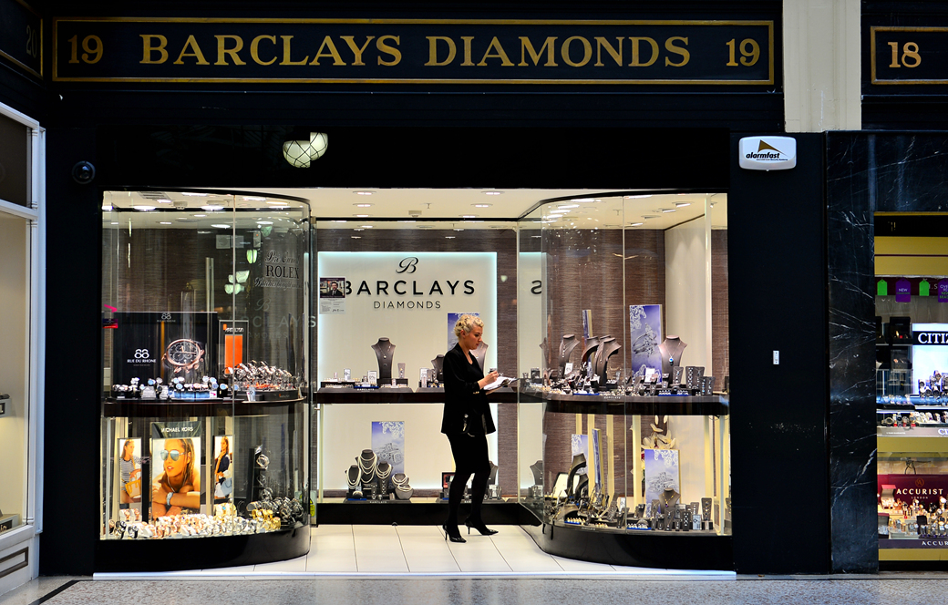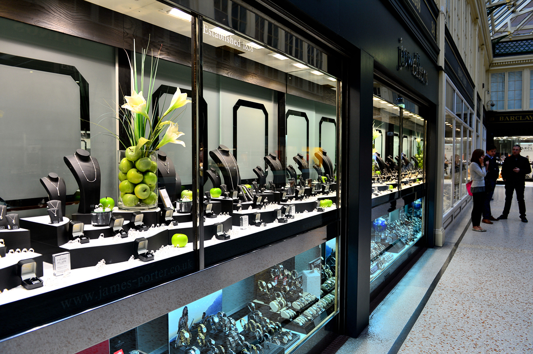 아가일 아케이드의 대표적인 상품이라는 값비싼 시계와 다이아몬드 상점 모습이다.