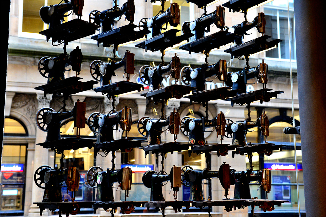 재봉틀을 도대체 몇 개나 진열해 놓은 거야~?