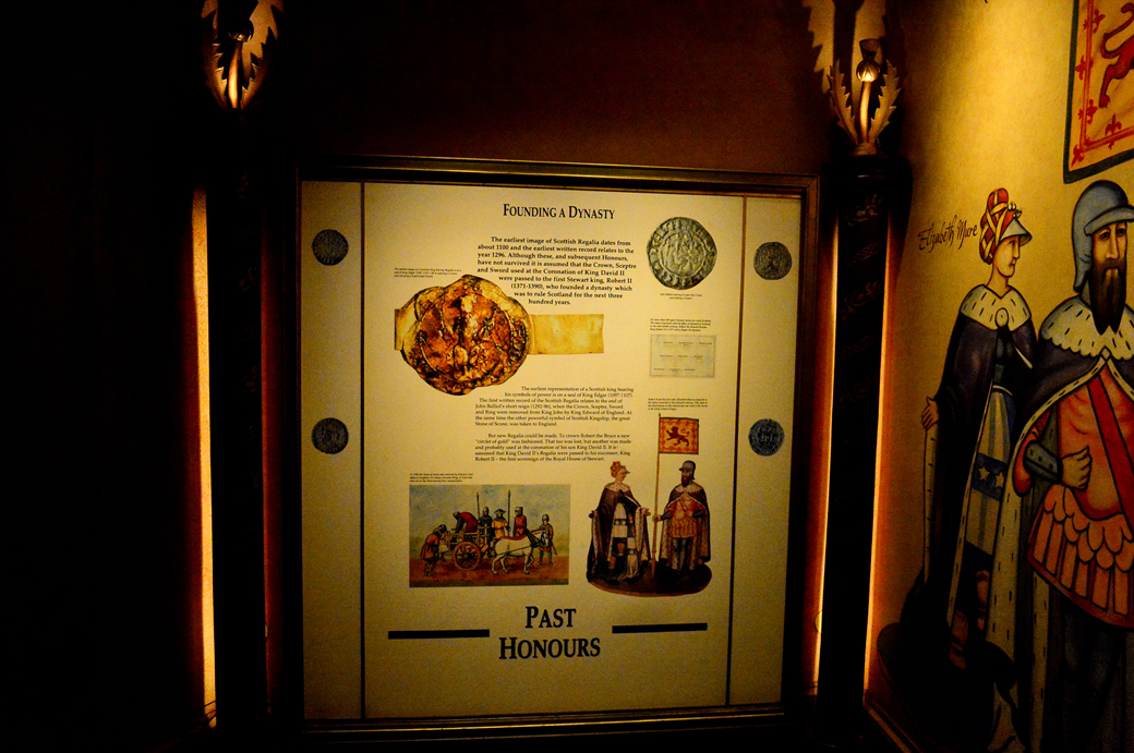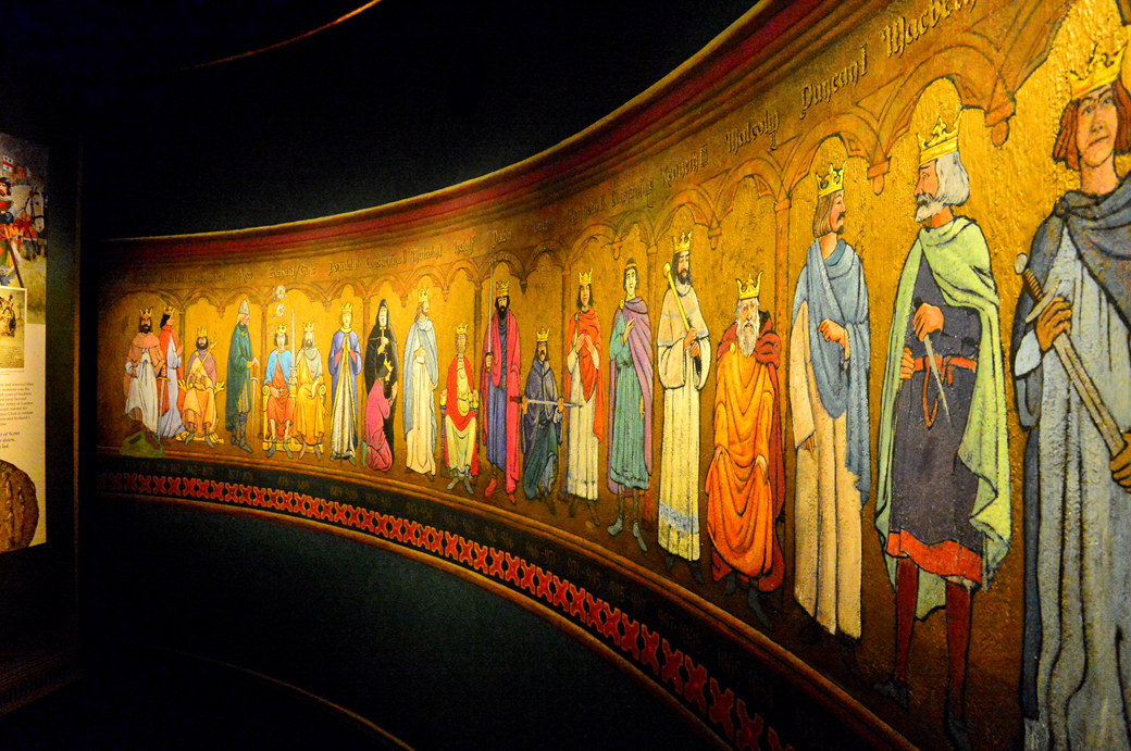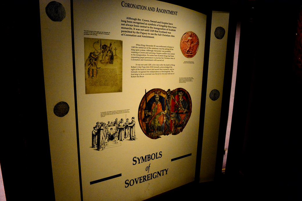 궁전을 들어서자 스코틀랜드 왕권의 상징인 대관석 Stone of Scone에 대한 내용이 보인다.