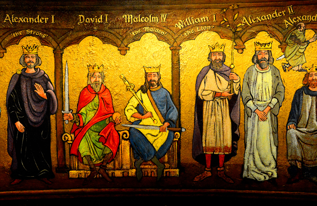 역대 스코틀랜드 왕들과 대관식을 치르는 모습이다.