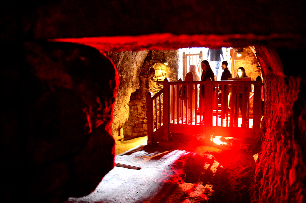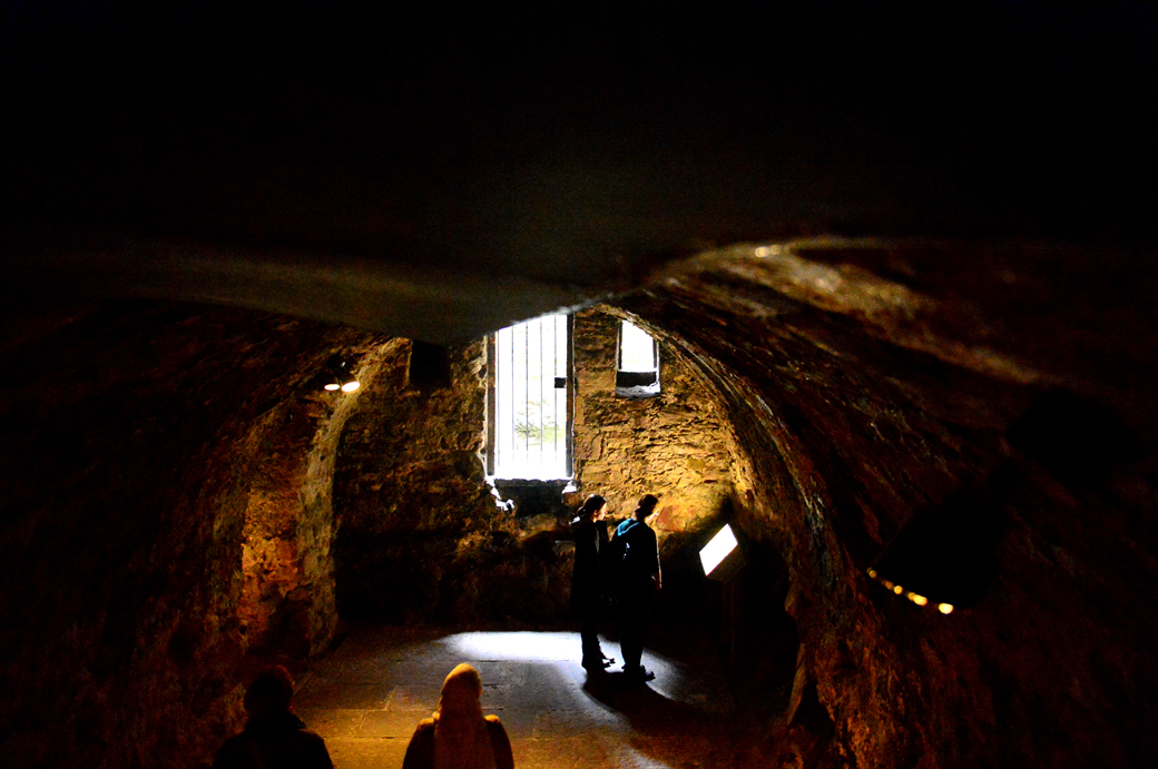 이 지하에 얽힌 에딘버러 성의 여러 이야기들을 기록해 놓은 안내문도 보인다.