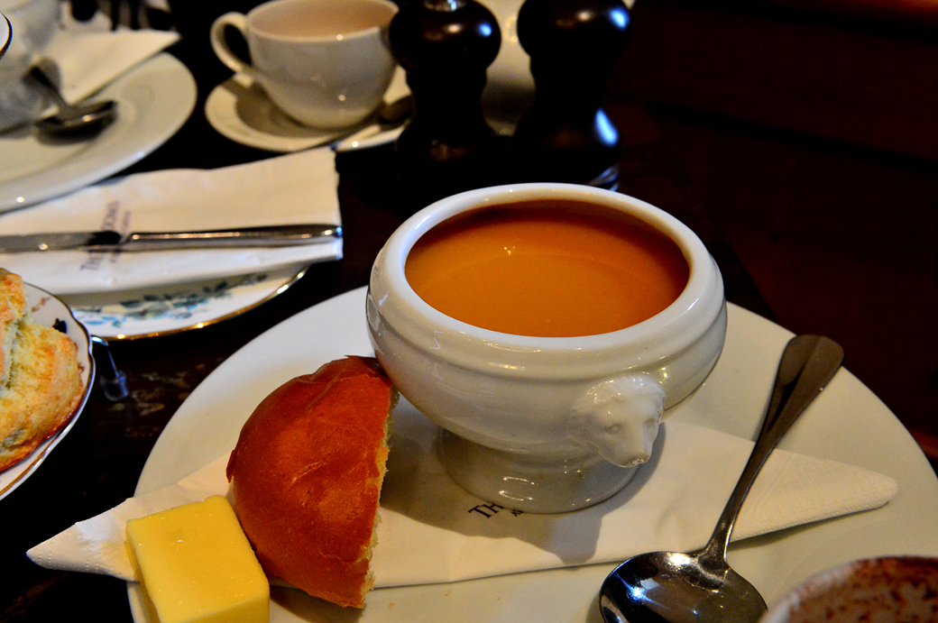 햐얀 볼에 담긴 노란색의 스프는 우리의 호박죽과 같은 것이다.