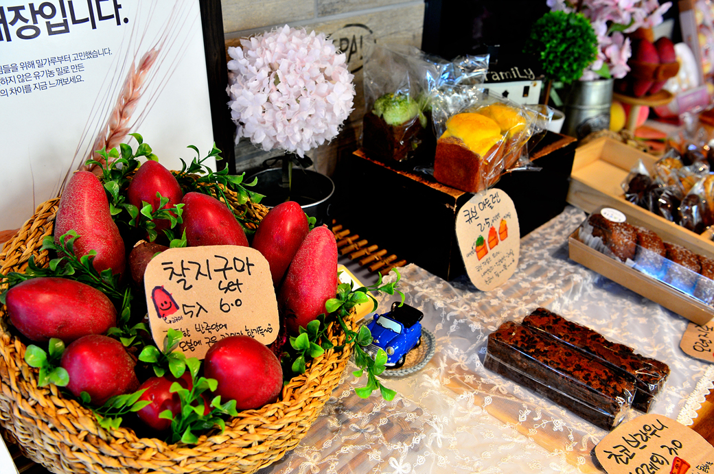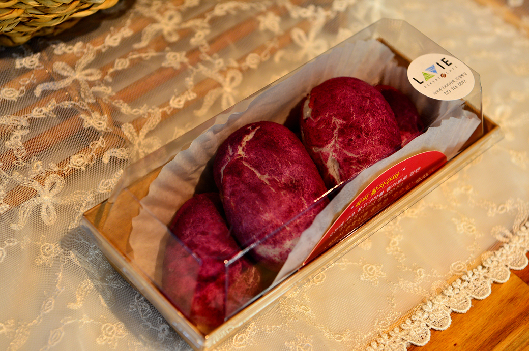 유기농 밀로 만든 반죽 안에 구운 고구마를 넣어서 만든 빵이란다.