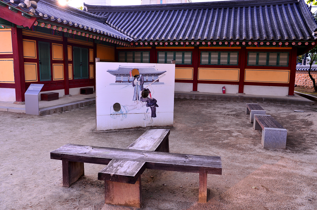 경기감영 안으로 들어서자 마당의 큰 함지막에 담긴 붉은 연꽃이 눈에 들어온다.