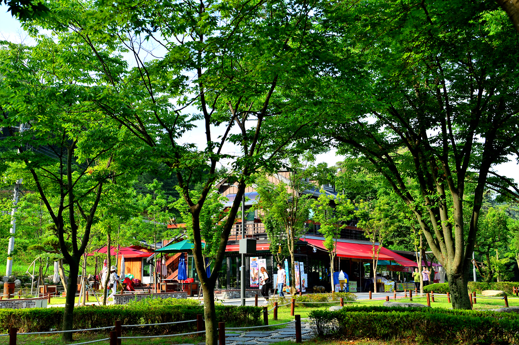 소금산 출렁다리 매표소 주변의 상가 모습이다.