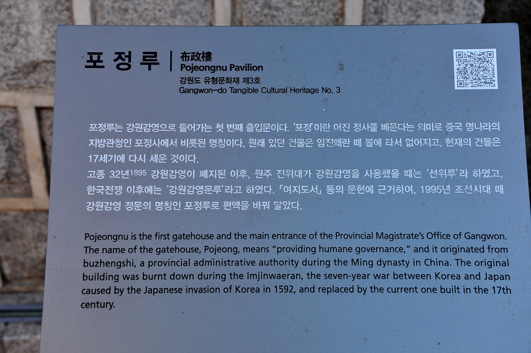 가까이에서 담아본 포정루 布政樓 모습이다.