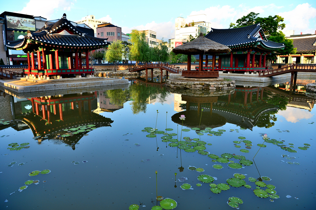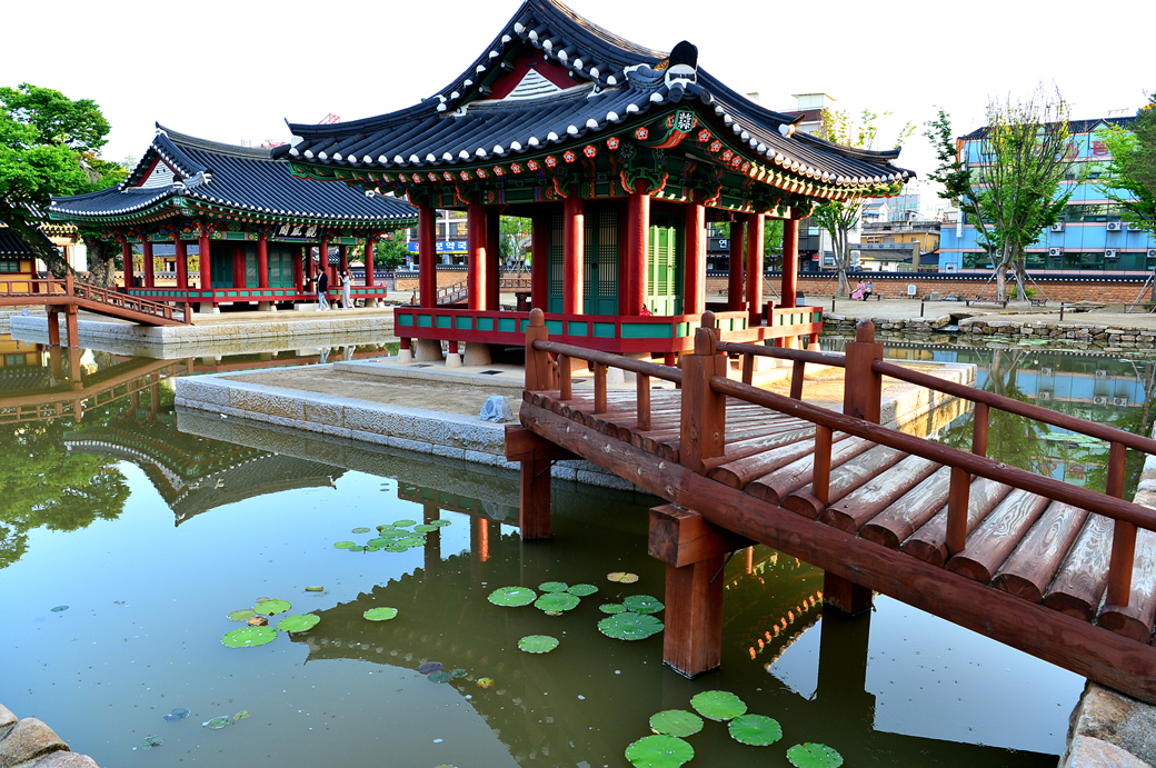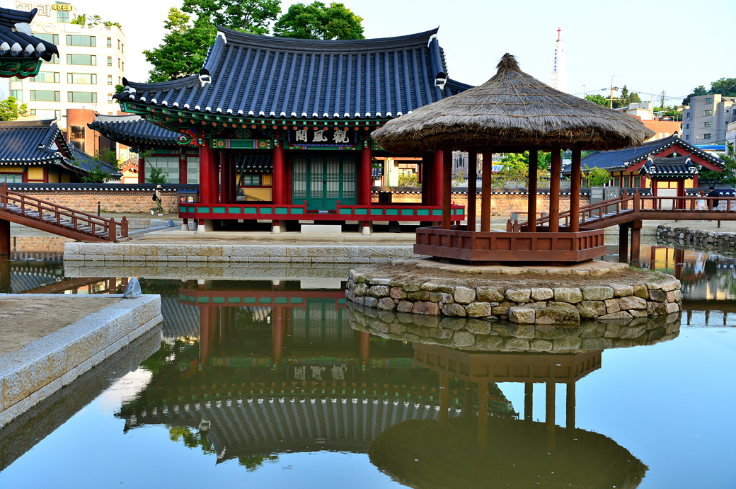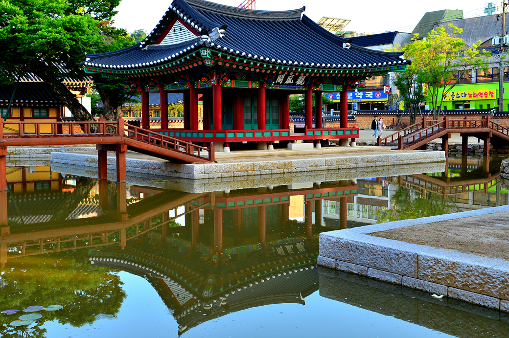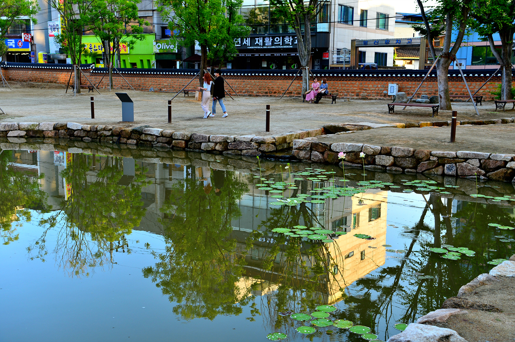연못 안의 건물들을 한꺼번에 담아본 모습이다.