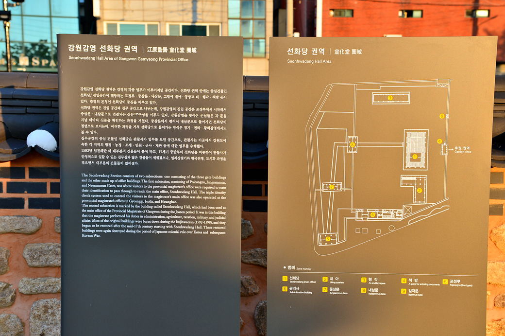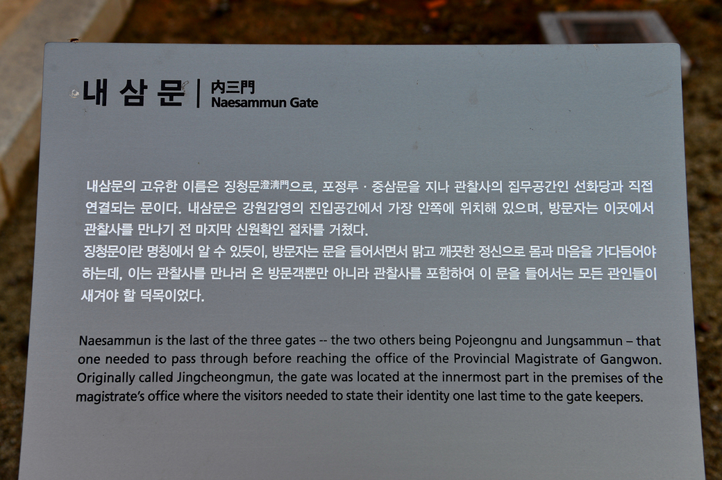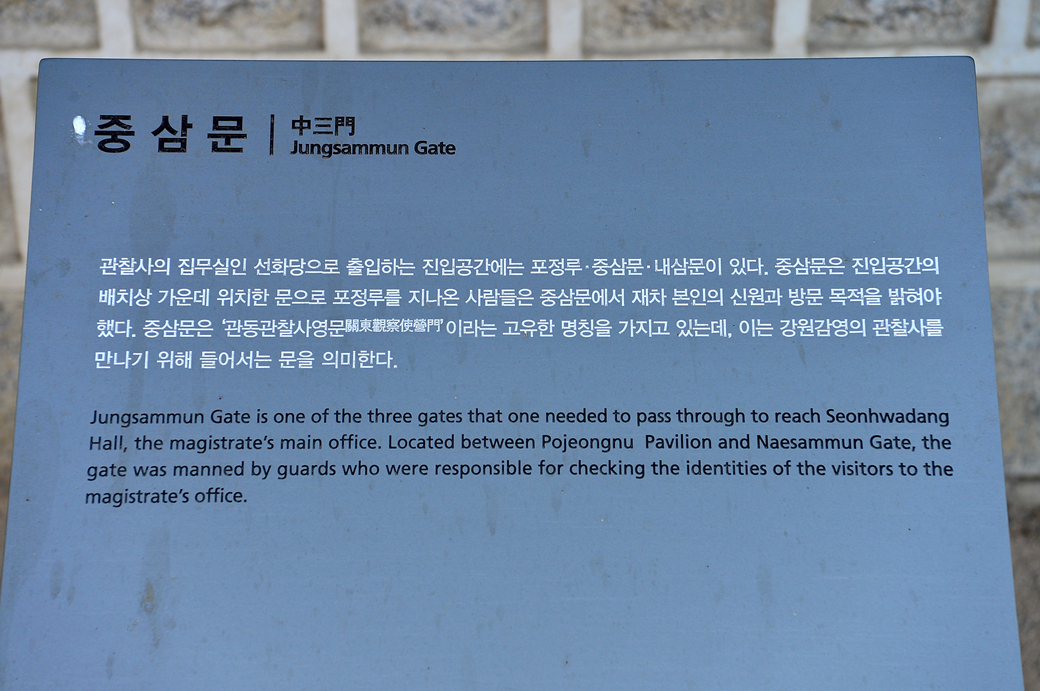 강원감영을 들어설려면 제일 먼저 첫 번째 출입문인 포정루를 지나서 중삼문, 내삼문을 거쳐 선화당으로 이어지는데