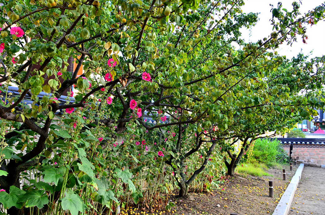 포정루 안쪽 감영 뜰에 심어져 있는 나무와 꽃들 모습이다.