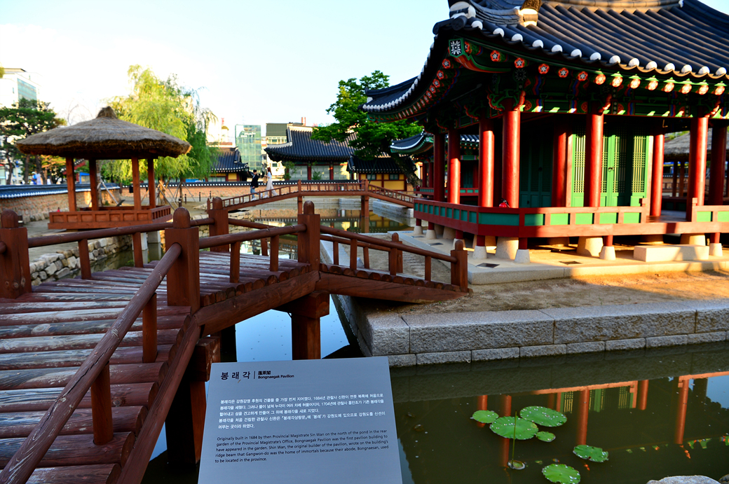 연못 안에 있는 봉래각 蓬萊閣도 나무 다리를 건너서 들어가도록 되어 있다.