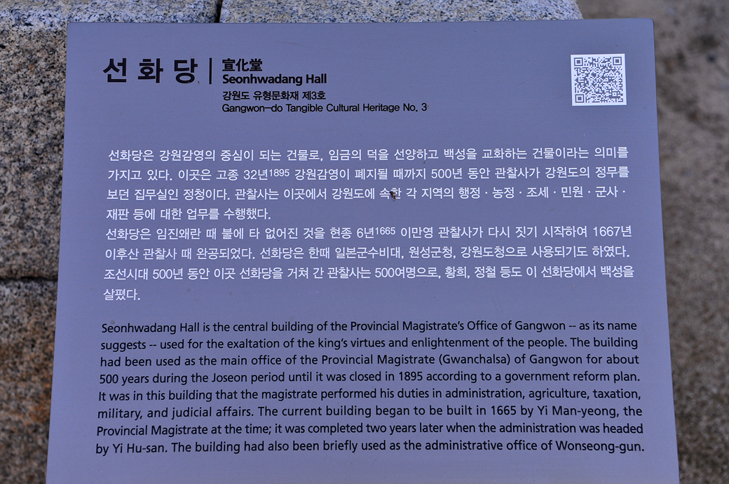 강원감영의 중심 건물인 선화당 宣化堂 모습이다.