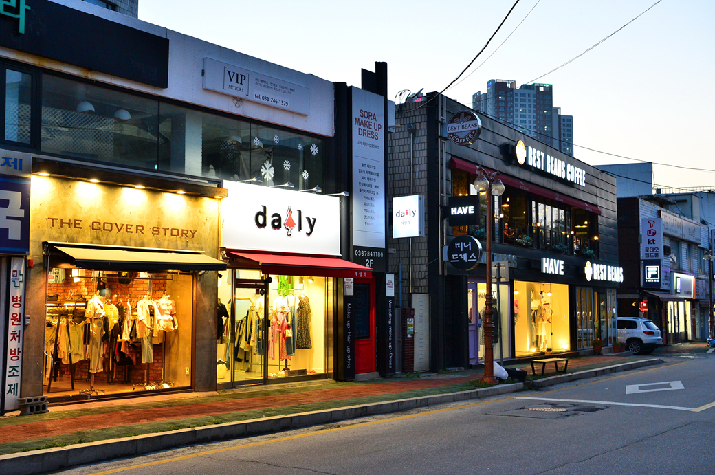원주 시장들이 몰려있는 곳에서 대로를 건넌 반대편 거리 모습이다.