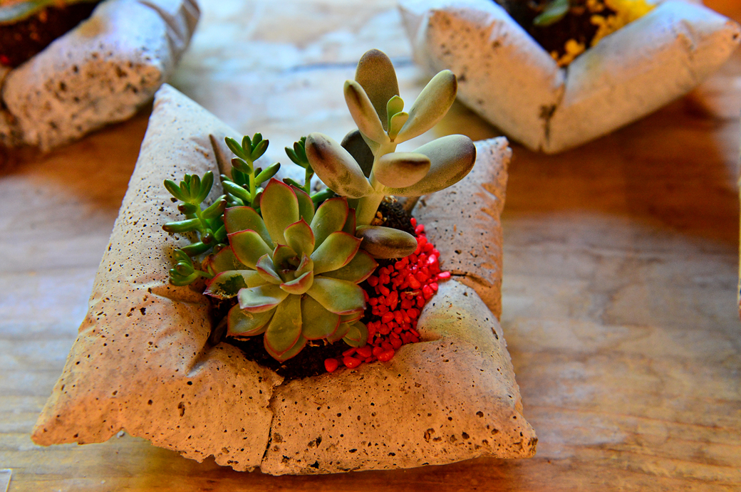 특별히 제작된 듯한 용기의 다육이 눈길을 끈다.