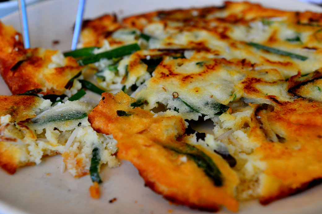 노릿노릿하게 부쳐진 파전의 구수함이 식욕을 자극한다.