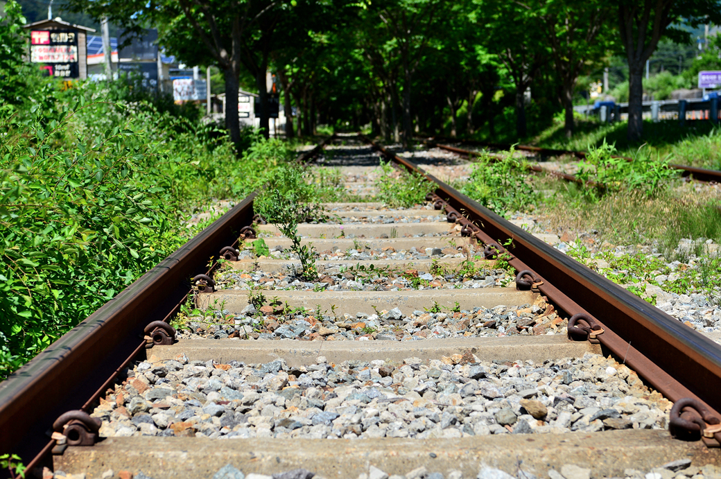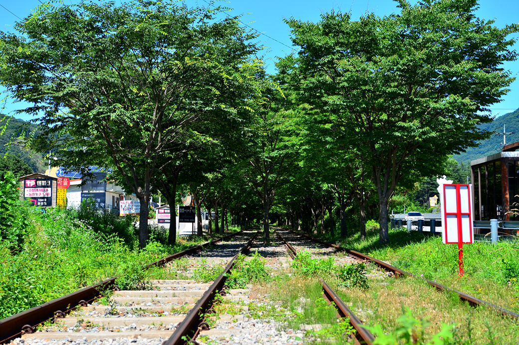 철로 주변의 풀들이 현재 이용하고 있는 철로인지 의구심이 들게 만드는데
