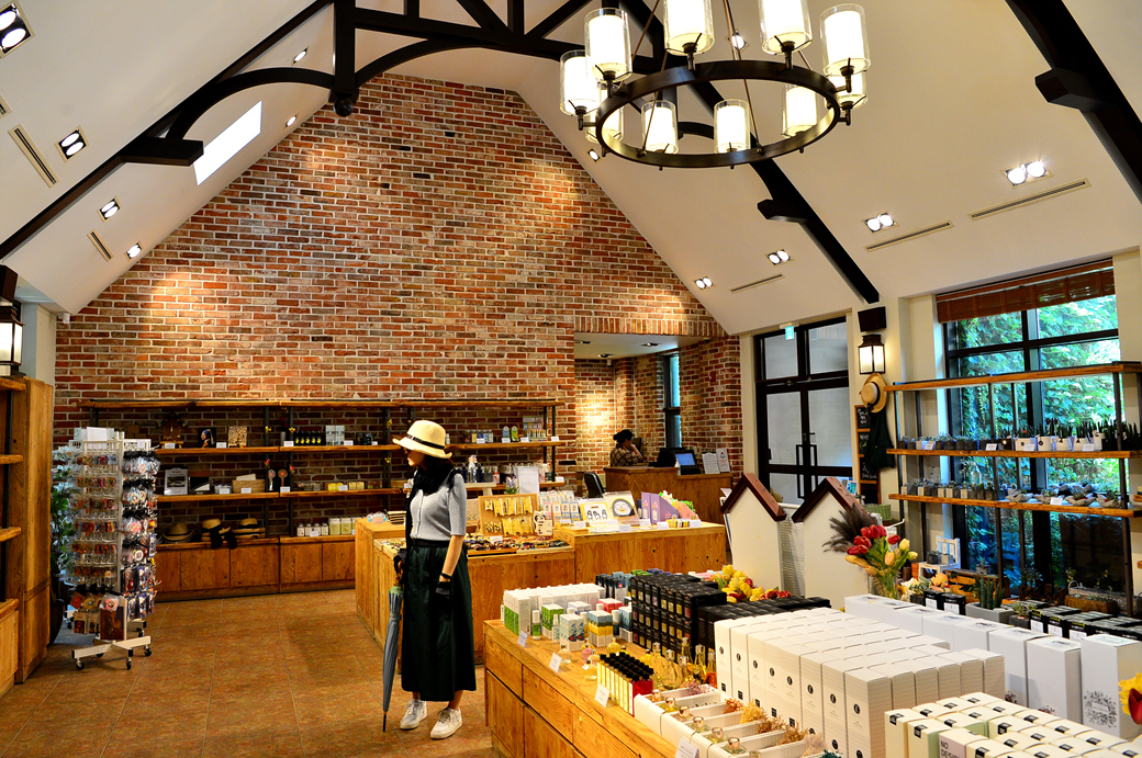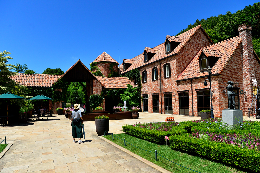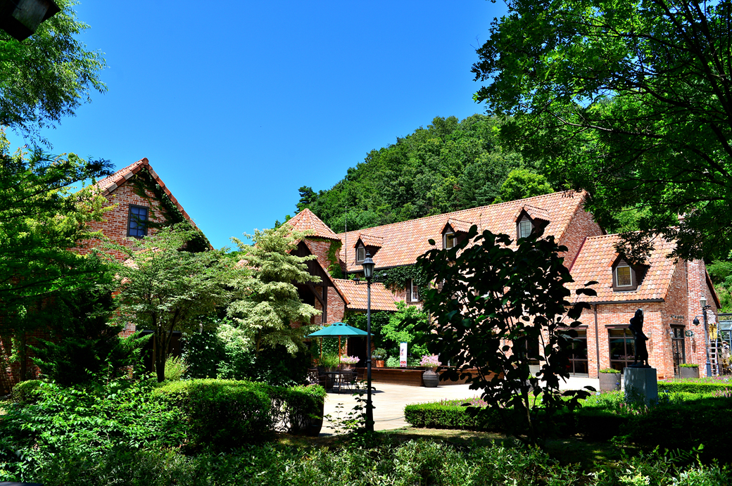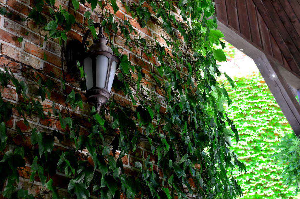 건물 외부엔 덩쿨 식물이 오르고 그 사이에 등이 설치되어 있어 야간에도 운치 있겠다.
