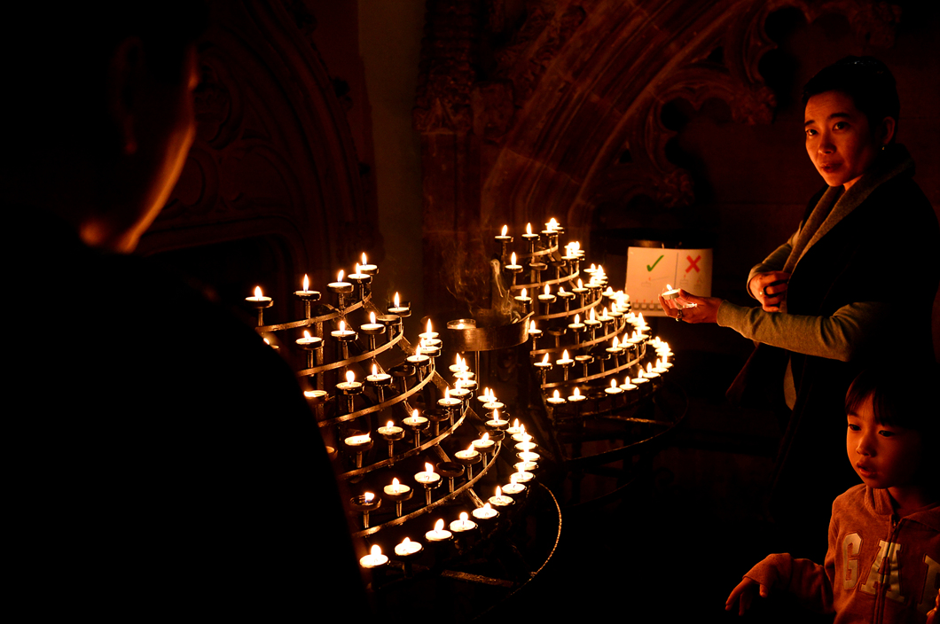 촛불 봉헌하는 가족 모습이 아름답게 다가온다.