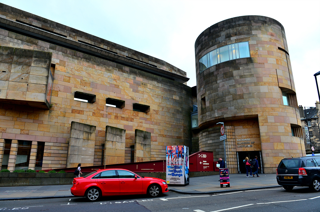 서로 이웃하는 2개의 역사 박물관 중 현대적인 건물의 스코틀랜드 박물관은 선사 시대부터 20세기까지의