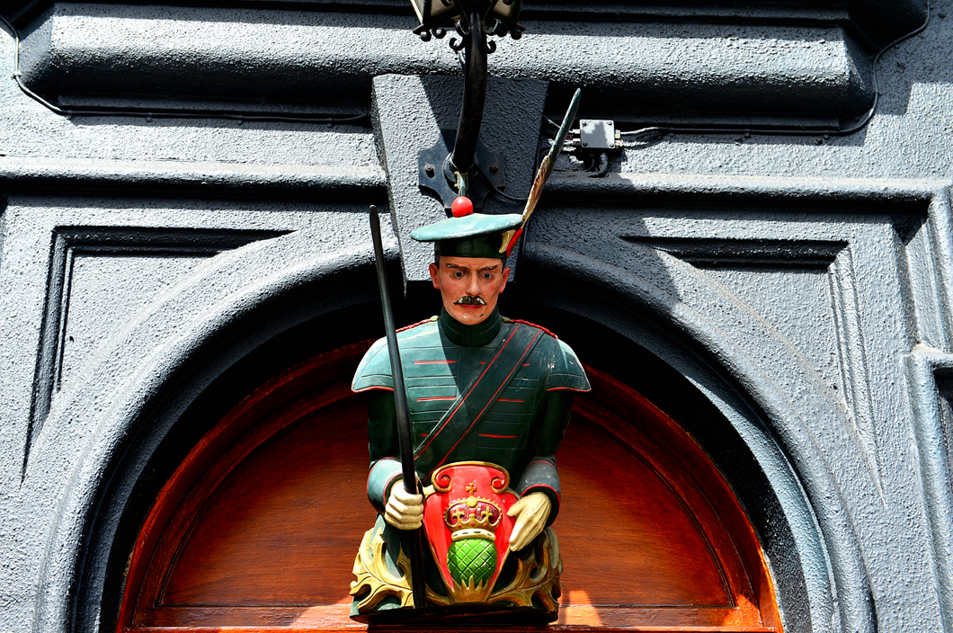 카페 입구의 상단을 장식하고 있는 조각상이 무척 인상적이다.