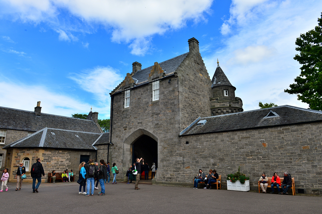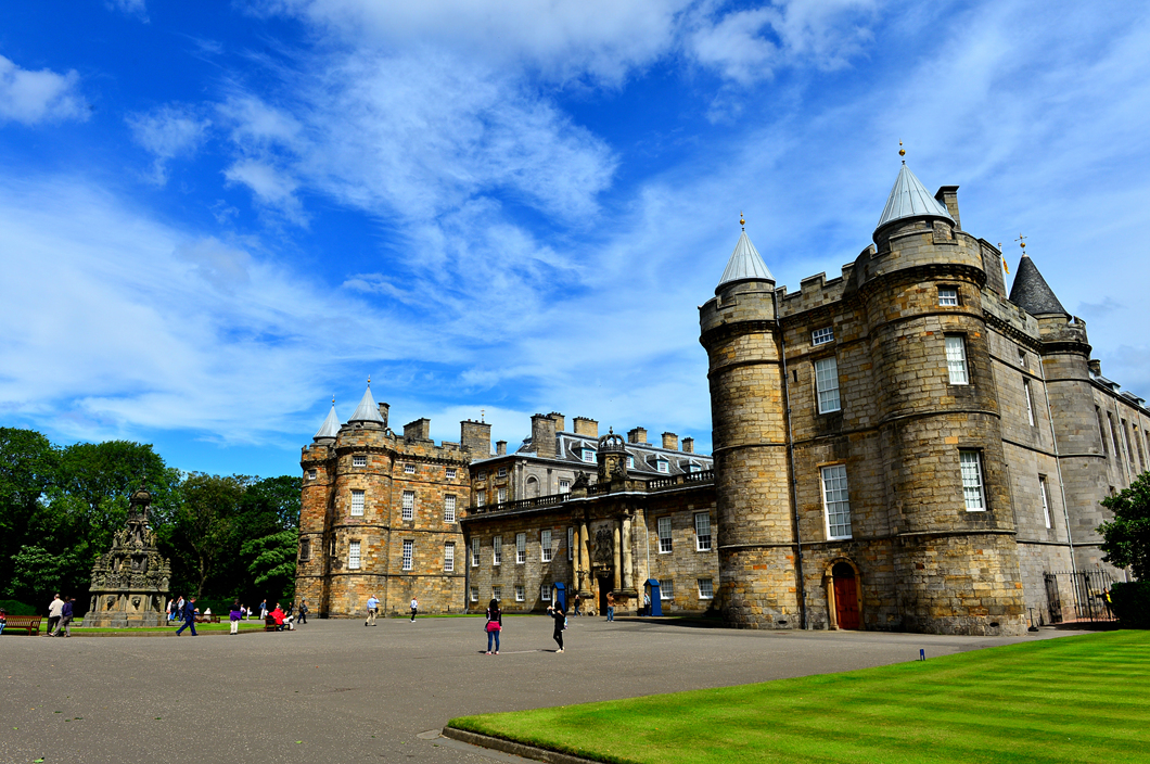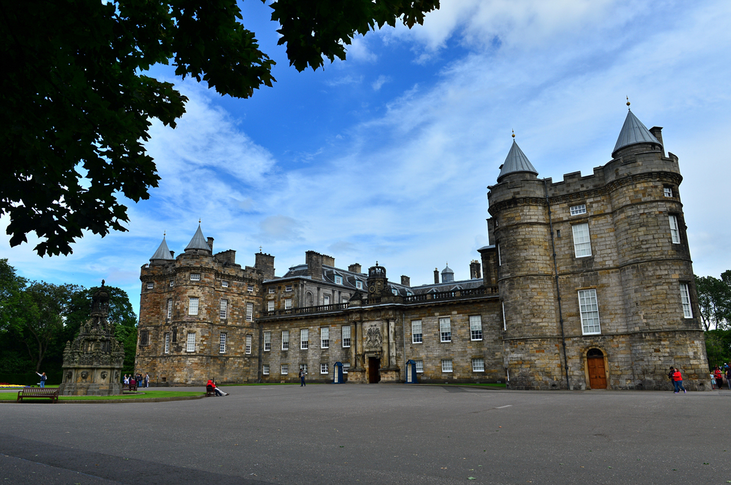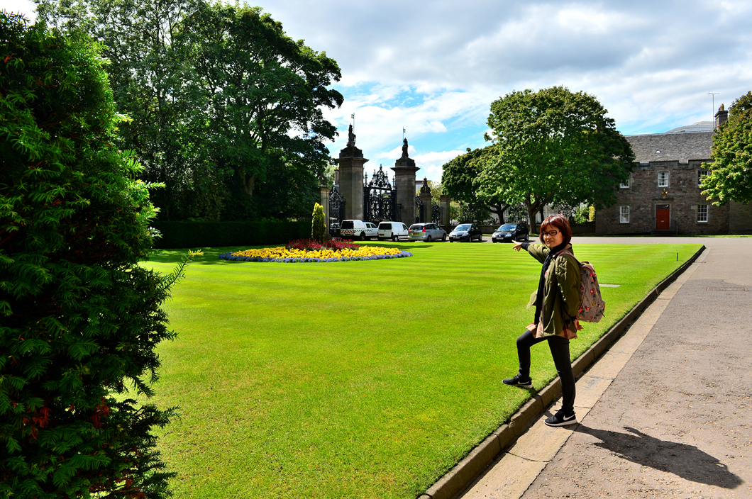 홀리루드하우스 궁전의 측면을 지나 궁전 앞으로 향하는 중이다.