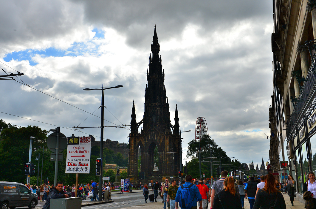 프린시즈 스트리트에서 본 밸모럴 호텔과 스콧 모뉴멘트 모습이다.
