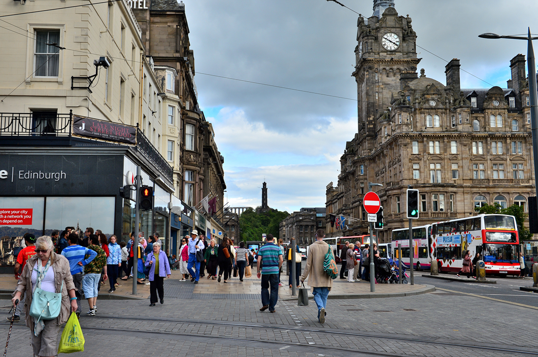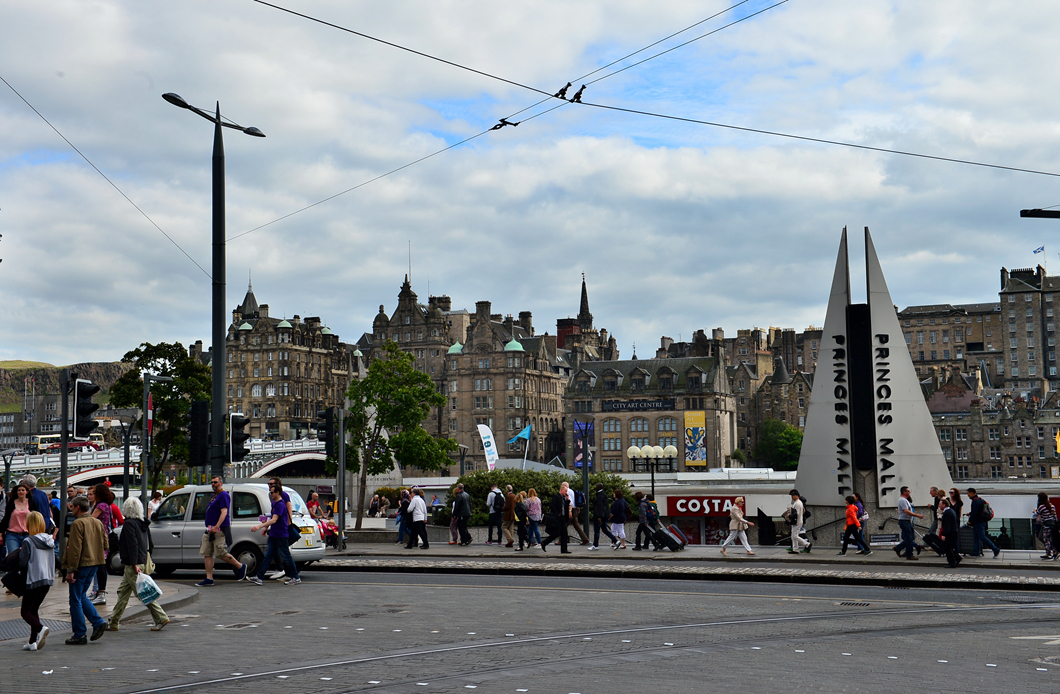 트램이 지나고 있는 이 거리는 퀸 스트리트와 프린시즈 스트리트를 잇는 세인트 앤드류 스트리트로