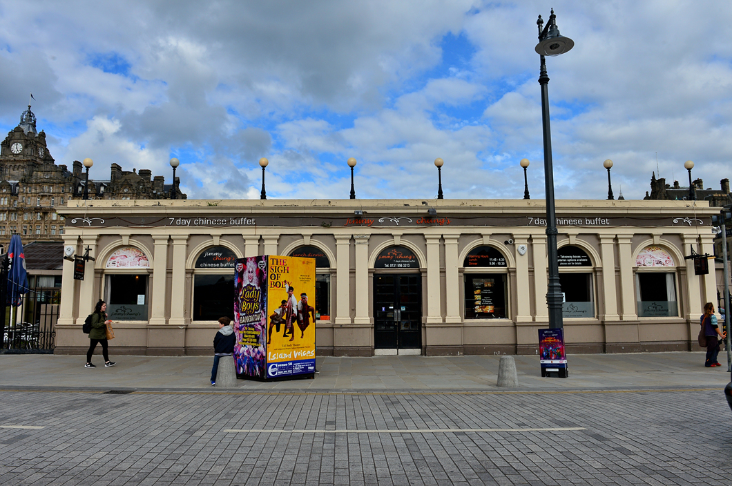 파도 모양의 웨이브 형태를 띤 파사드를 가지고 있는 이곳은 Edinburgh Waverley 역 옆의 Waverley Mall 입구다.