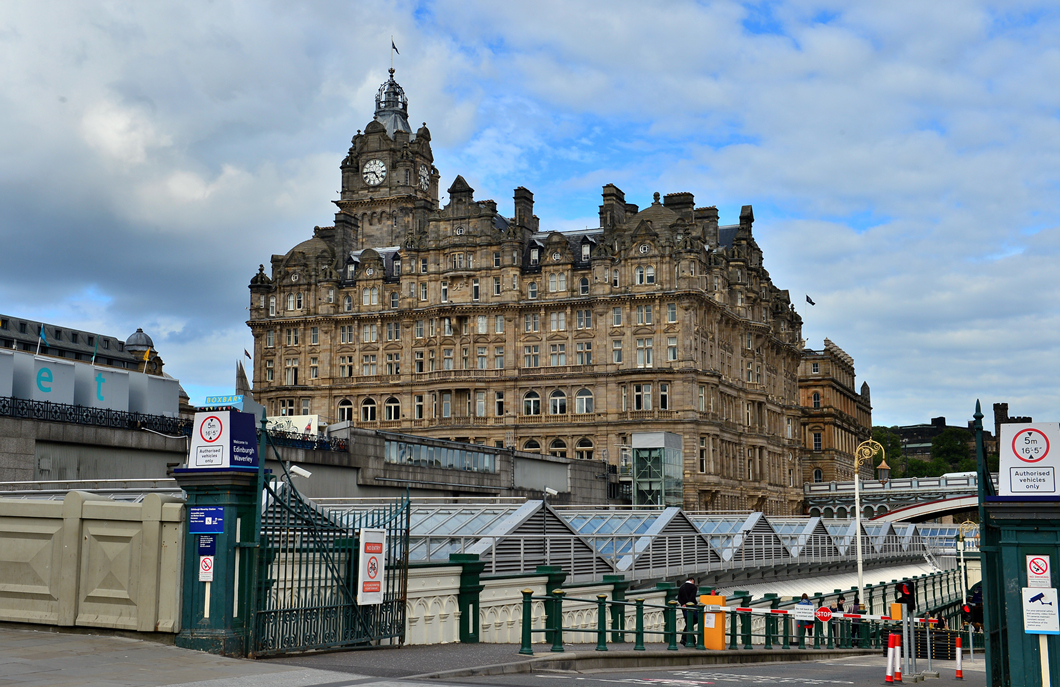 역과 쇼핑몰 뒷쪽의 The Balmoral 호텔 모습이다.