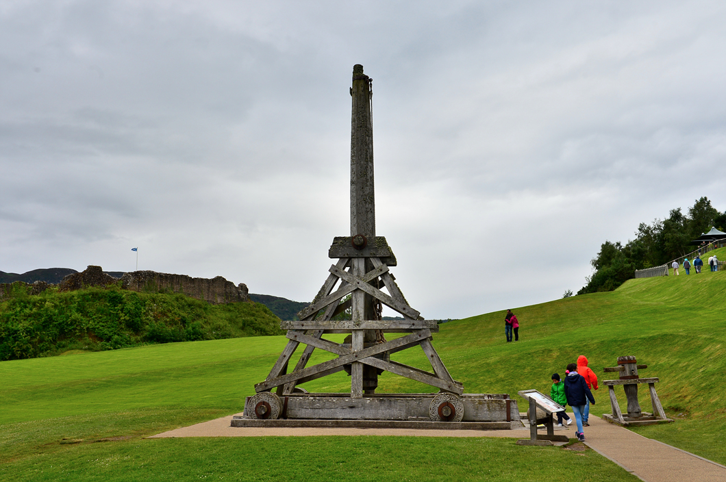 언덕 아래에는 과거 성을 둘러싼 치열한 공성전을 이끌었던 거대한 투석기가