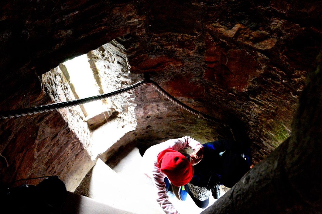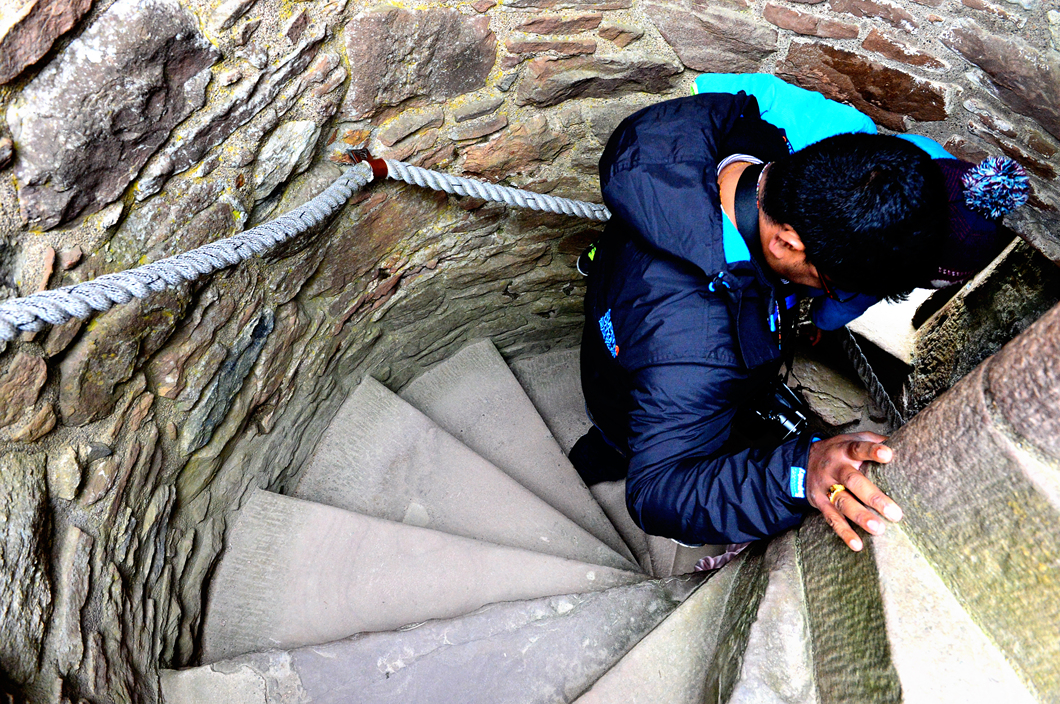탑을 오르내리는 계단이 무척 협소하다.