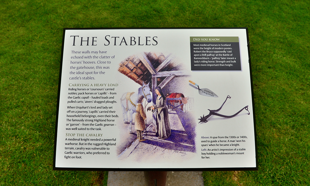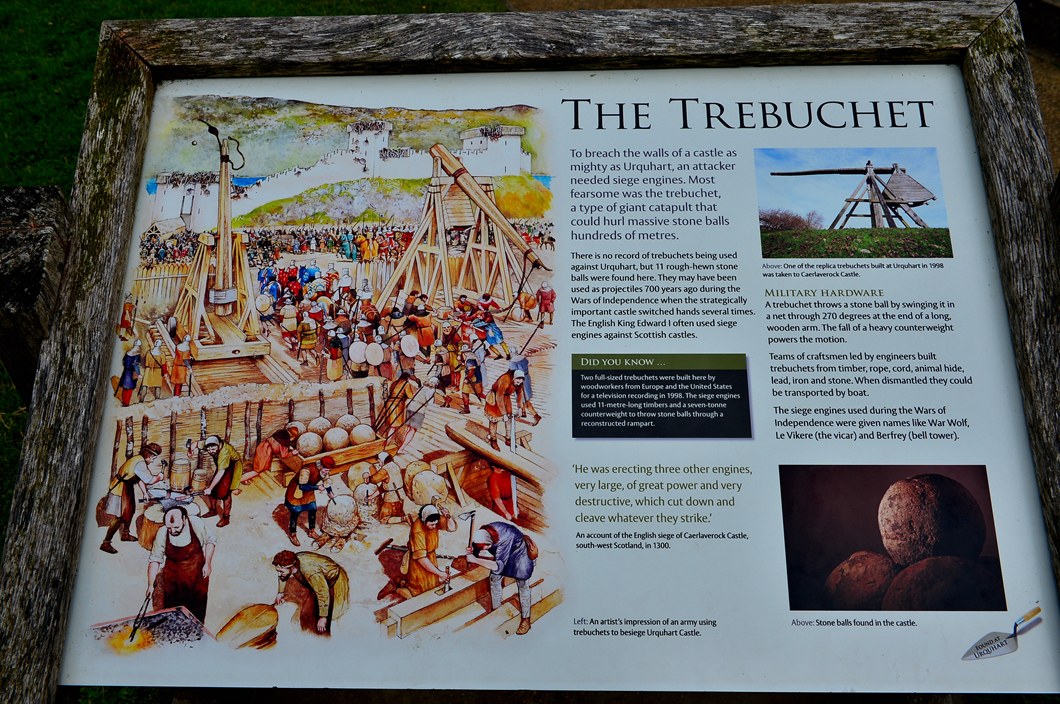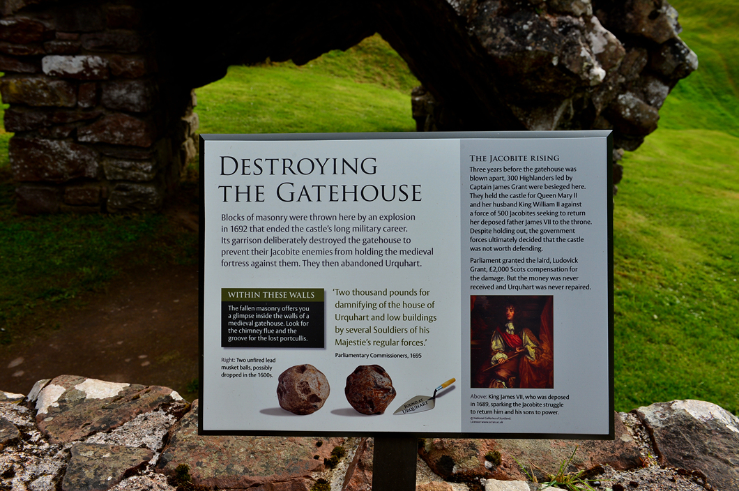 폐허로 남게 된 어쿼드 성의 사유를 연대별로 설명해 놓은 안내판이다.