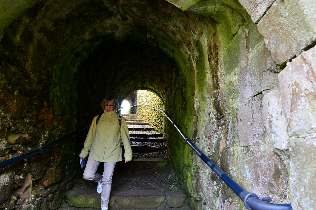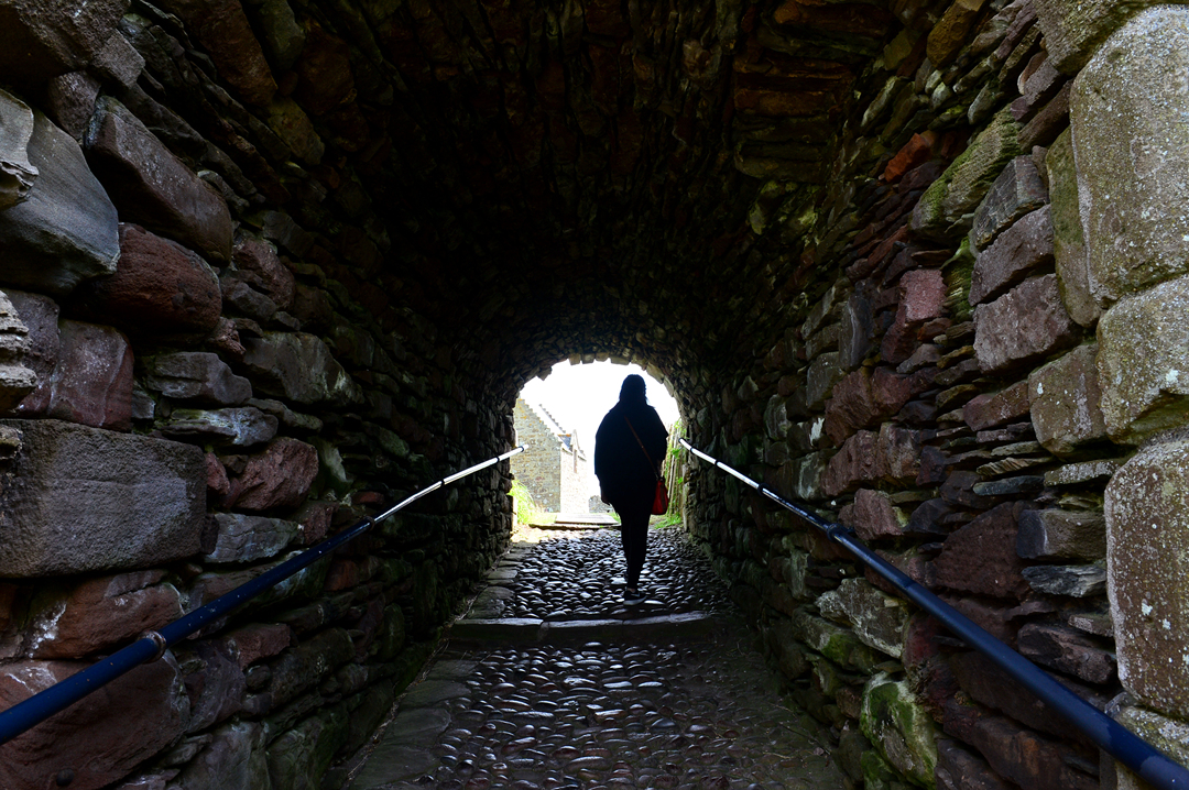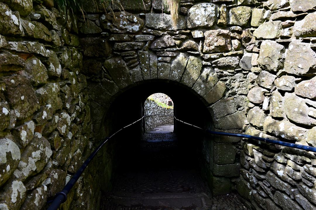 두텁게 쌓아 올린 석재 벽 가운데로 마치 터널처럼 길이 이어져 있다.
